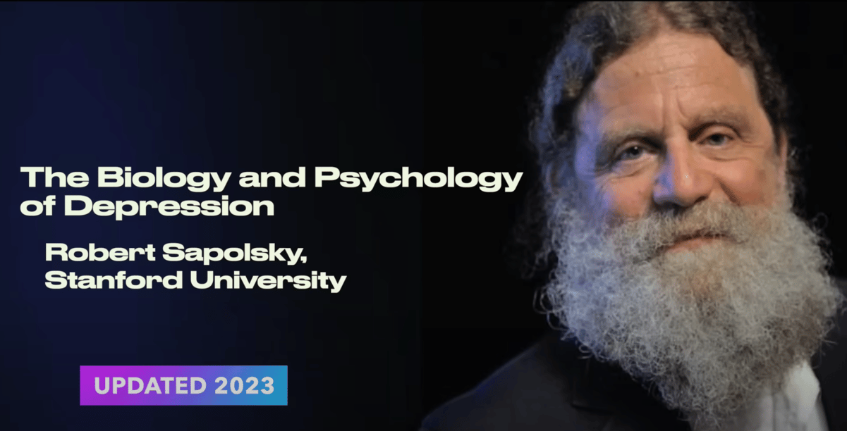 Salut, je m’appelle Robert Sapolsky. Je suis professeur de biologie, neurologie et neurochirurgie à l’université de Stanford. Il y a environ 13 ans, j’ai donné une conférence à Stanford sur la biologie de la dépression. Quelqu’un l’a enregistrée, et Stanford l’a mise en ligne sur YouTube. Ça a donné du bon et du moins bon. Le bon côté, c’est que depuis, cette conférence a été vue plus de cinq millions de fois, ce qui suggère qu’elle est utile. Le moins bon, c’est qu’elle a été vue plus de cinq millions de fois… ce qui en dit long sur l’ampleur du problème de la dépression. Heureusement, depuis 13 ans, il y a eu quelques avancées dans le domaine. L’objectif de cette conférence, c’est donc un peu comme la suite de celle de 2010 : une mise à jour des connaissances.